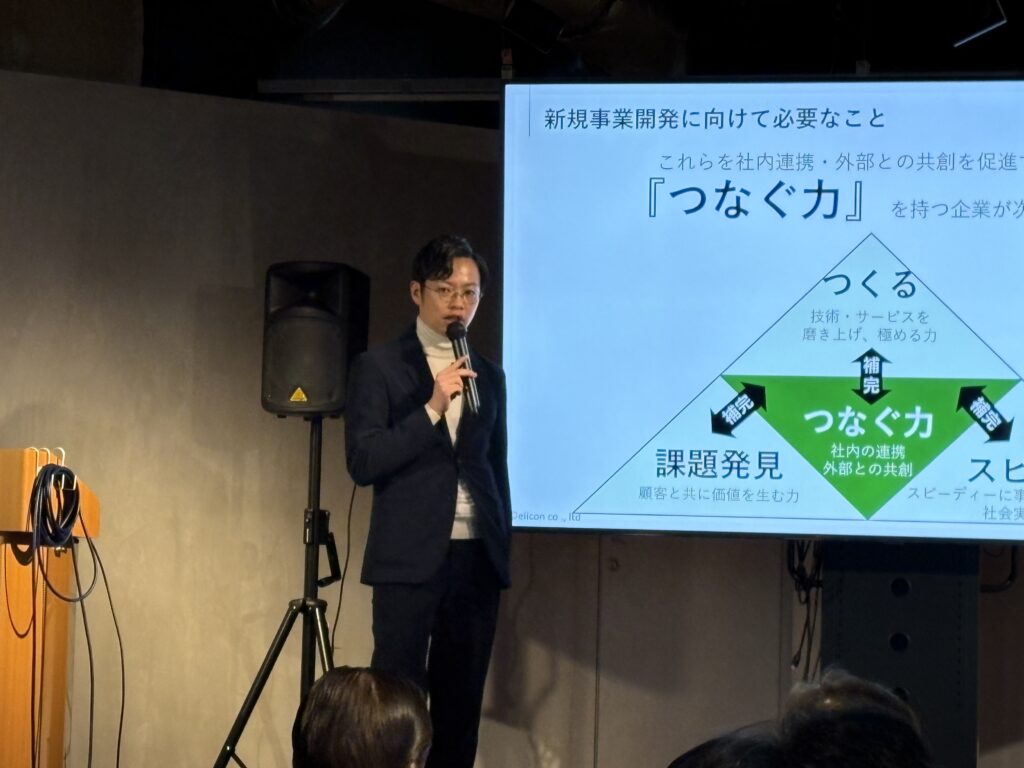 令和8年1月19日(月)、第2回「経済活性化委員会(渋沢MIX視察)」を「オープンイノベ―ションに取り組もう」をテーマに開催、会員等39名に参加いただきました。第一部では埼玉県産業労働部産業支援課主幹の佐藤雅康氏から渋沢MIXの概要等について説明をいただき、その後2班に分かれて館内を視察しました。第二部は「オープンイノベーションによる新規事業創出― 共創型事業創出が“当たり前になる時代”へ ―」と題して、株式会社eiicon執行役員地域イノベーション推進本部本部長の伊藤達彰氏から講話をいただきました。