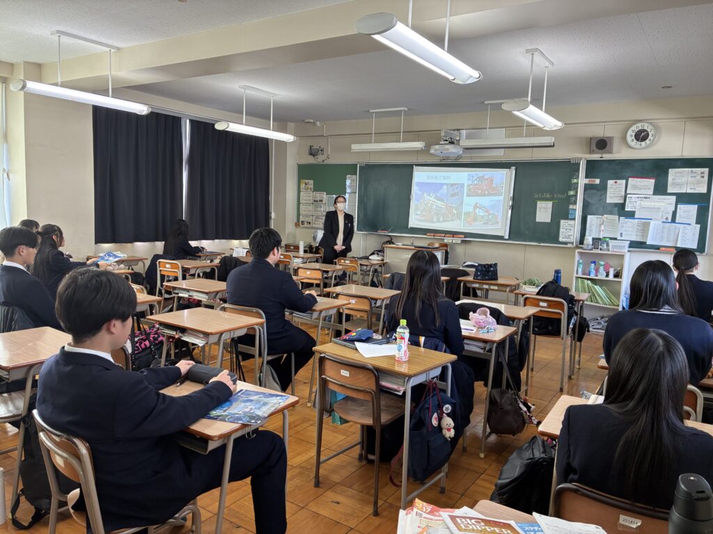 令和8年2月19日(木)、埼玉県教育委員会と本会、埼玉県経営者協会、三郷市商工会、八潮市商工会主催による「高校生と企業社員との交流会」が埼玉県立草加東高校にて開催され、本会からはエントリーいただいた会員企業10社(全体で24社、うち本会会員企業15社)に参加いただきました。本交流会は埼玉県教育委員会と締結した「未来を担う子どもたちの教育に関する協定」に基づき実施したものです。高校生が企業社員との交流を通して、実際の働き方や仕事内容について理解を深めることで、自己と社会の関わりや将来の在り方生き方、進路選択について考える機会とするとともに、望ましい職業観や就業観を醸成するものです。当日は同校1学年の生徒全員(318名)が、それぞれ希望する企業・業種等により4社(1社20分×4回)の交流会に参加。企業の事業内容や業界動向、仕事の内容等について社員からレクチャーを受けました。