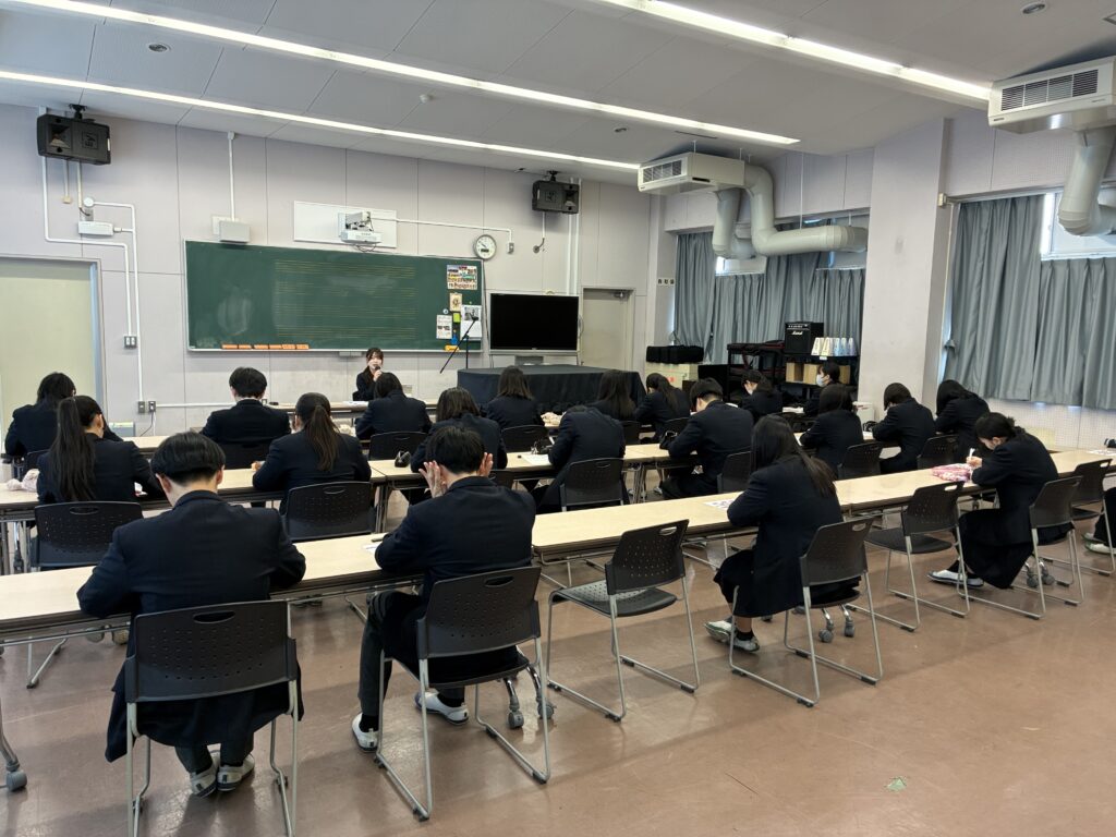令和8年3月13日(金)、埼玉県教育委員会と本会、さいたま商工会議所主催による「高校生と企業社員との交流会」が埼玉県立大宮商業高校にて開催され、本会からはエントリーいただいた会員企業14社(全体で28社、うち本会会員企業18社)に参加いただきました。本交流会は埼玉県教育委員会と締結した「未来を担う子どもたちの教育に関する協定」に基づき実施したものです。高校生が企業社員との交流を通して、実際の働き方や仕事内容について理解を深めることで、自己と社会の関わりや将来の在り方生き方、進路選択について考える機会とするとともに、望ましい職業観や就業観を醸成するものです。当日は同校1・2学年の生徒全員(353名)が、それぞれ希望する企業・業種等により3社(1社30分×3回)の交流会に参加。企業の事業内容や業界動向、仕事の内容等について社員からレクチャーを受けました。